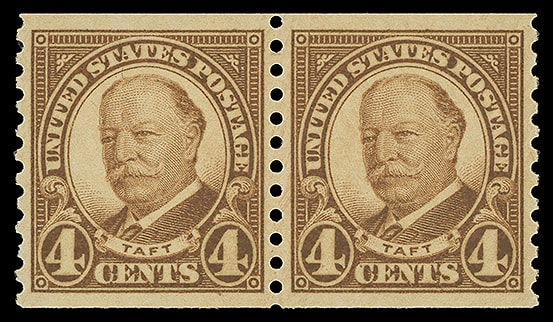 1930, 4¢ Taft, rotary press coil, pair, o.g., never hinged, exceptionally well centered, Extremely Fine to Superb; with 2009 P.S.E. and 2012 P.F. certificates, both graded ( XF-SUP 95 ). Scott No. 687.