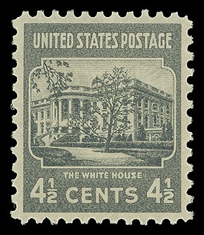 1938, 4½¢ White House, o.g., never hinged, perfectly centered, bright and fresh, Superb; with 2009 P.S.E. certificate graded ( SUP 98 ). Scott No. 809. SMQ $65.