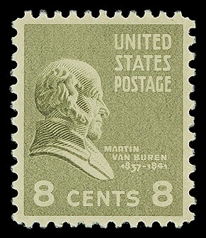 1938, 8¢ Van Buren, o.g., never hinged, a Superb gem, near perfect centering, bright and fresh. Scott No. 813.