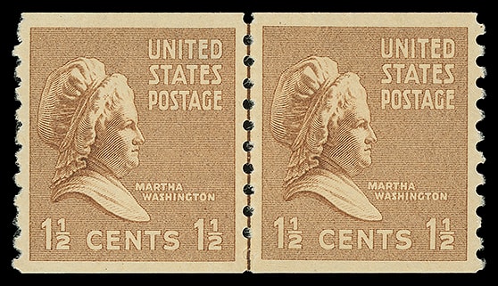 1939, 1½¢ Martha Washington, horizontal coil, line pair, o.g., never hinged, exceedingly well centered, rich color and strong impression, Extremely Fine to Superb; with 2016 P.S.E. certificate graded ( XF-SUP 95 ). Scott No. 840.
