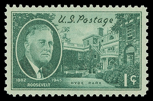 1945, 1¢ Franklin D. Roosevelt, o.g., never hinged, exceptionally well centered within perfectly balanced margins, brilliant color, fresh and Superb; with 2018 P.S.E. certificate graded ( SUP 98 ). Scott No. 930.