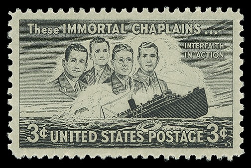 1948, 3¢ Four Chaplains, o.g., never hinged, exceptionally well centered, bright and fresh, Superb; with 2013 P.S.E. certificate graded ( SUP 98 ). Scott No. 956.