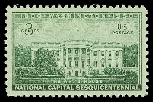1950, 3¢ National Capital: White House, o.g., never hinged, exceptional centering, bright and fresh, Superb; with 2018 P.S.E. certificate graded ( SUP 9 8). Scott No. 990.