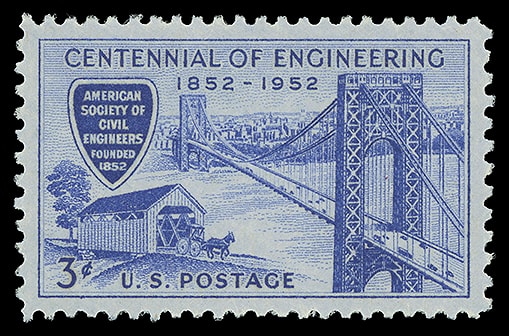 1952, 3¢ Engineering Centennial, o.g., never hinged, Superb; with 2022 P.S.E. certificate graded ( SUP 98 ). Scott No. 1012.