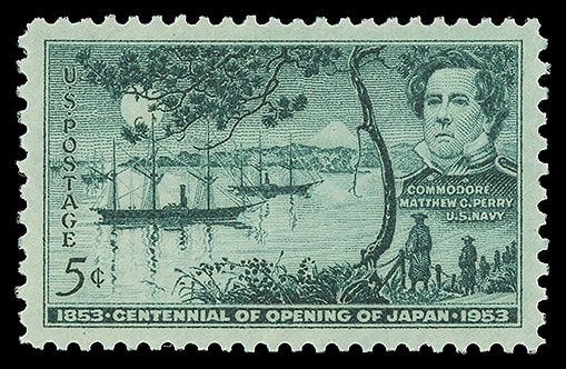 1953, 5¢ Opening of Japan Centennial, o.g., never hinged, Superb; with 2021 P.S.E. certificate graded ( SUP 98 ). Scott No. 1021.