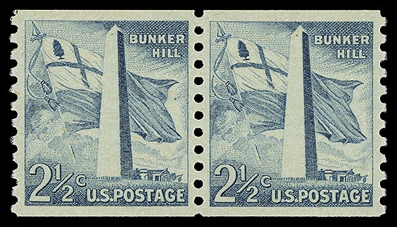 1959, 2½¢ Bunker Hill, horizontal coil, large perf holes, pair, o.g., never hinged, Superb; with 2021 P.S.E. certificate graded ( SUP 98 ). Scott No. 1056.