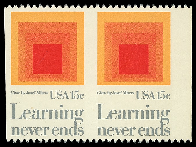 1980, 15¢ Education, horizontal pair, imperf. vertically, o.g., never hinged, Extremely Fine, only 100 pairs reported.