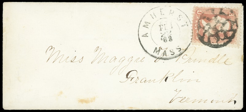 Honeycomb, duplexed with "Amherst Mass., Feb 22 '63" cds ties 3¢ rose (65) on cover to Franklin Vt., Very Fine.