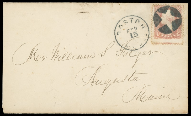 Negative Star, bold strike duplexed with "Boston Mass., Sep 15" cds on cover to Augusta Me.; reduced slightly at left, otherwise Very Fine.