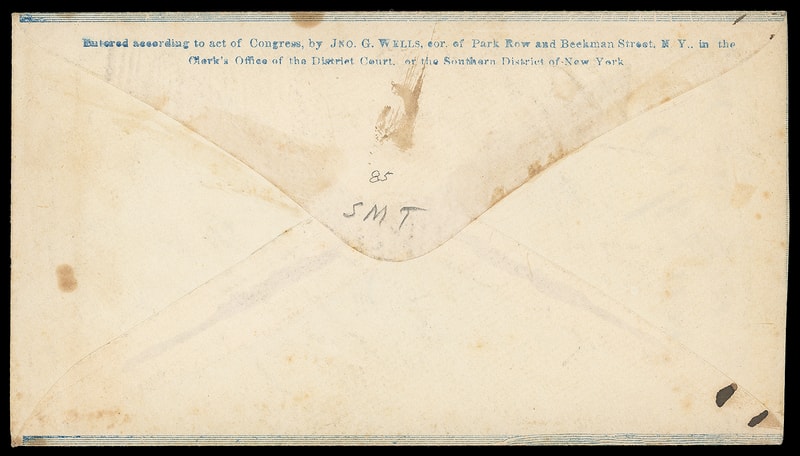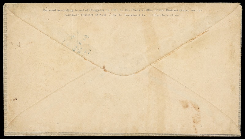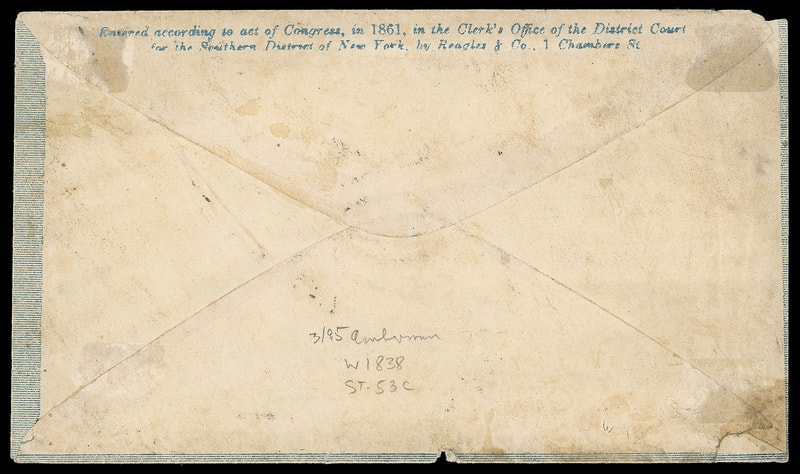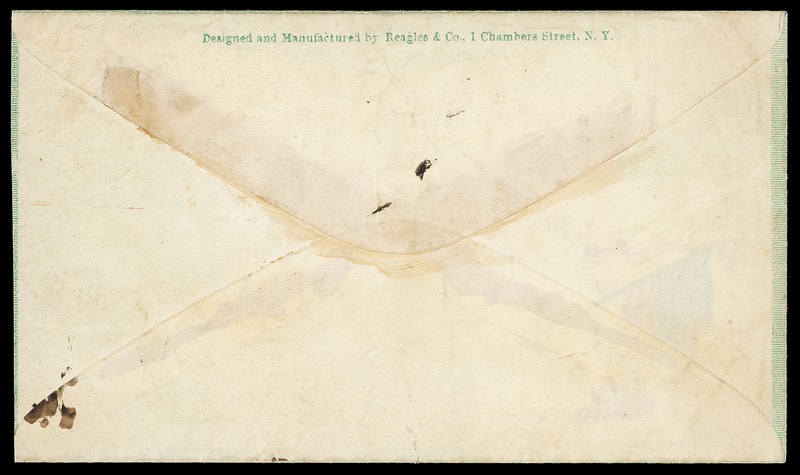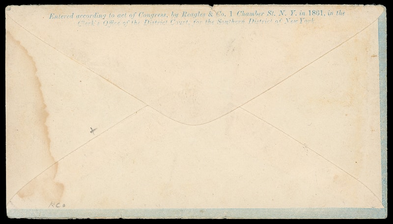 The Loyal States, Union, Ohio, blue overall design with "Reagles & Co." flap imprint on cover bearing 3¢ rose (65) tied by bold "Washington D.C. May 23, 186" cds to Springfield, Ohio; small edge flaws and wear, reduced slightly at left, F.-V.F.