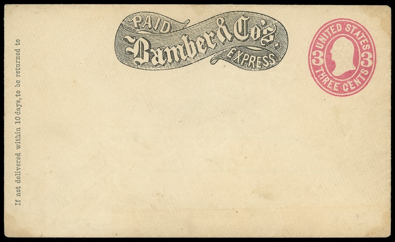 Bamber & Co's Express, printed ribbon frank on 3¢ pink (U58) mint entire, F.-V.F.