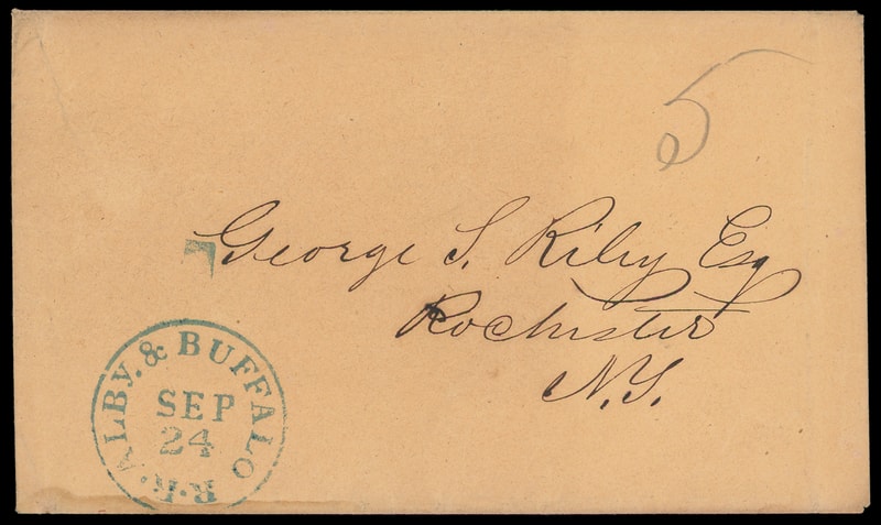 Alby. & Buffalo R.R., Sep 24, sharp blue cds with pencil "5" rating on buff cover to Rochester N.Y., Very Fine and choice strike.