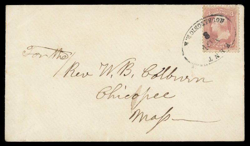 Housatonic R.R., Kent, Nov 8, clear station oval ties 3¢ rose (65) on cover to Chicopee Mass., Very Fine and scarce.