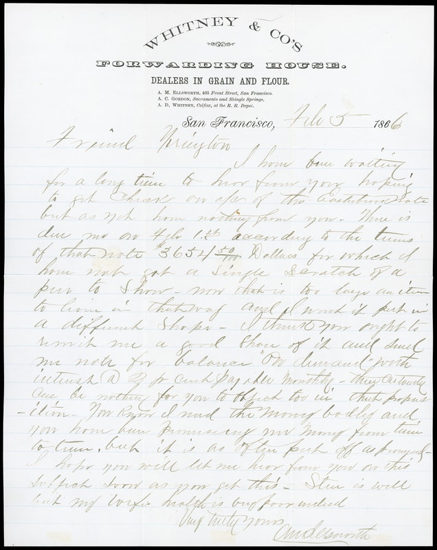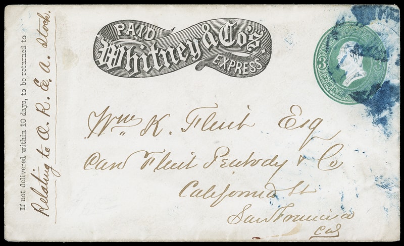 Whitney & Co.'s Express operated from 1869-1875 in the Bay Area. This cover probably precedes their operation as an express company.Lot 177