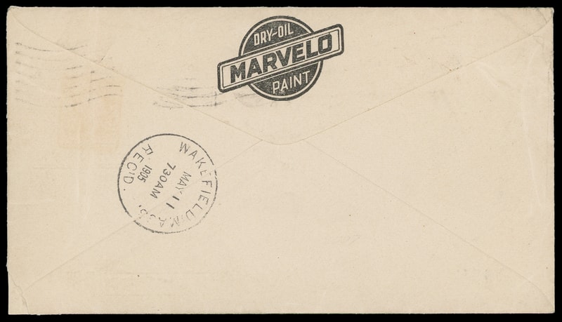 (Paint) The Muralo Paint Company, New York City, advertising collar with additional illustrated advertising at left and backflap, bearing 2¢ carmine (319) tied by "New Brighton, N.Y 1905" flag machine cancel to Wakefield, Mass., arrival backstamp, small lower right corner mend, F.-V.F.