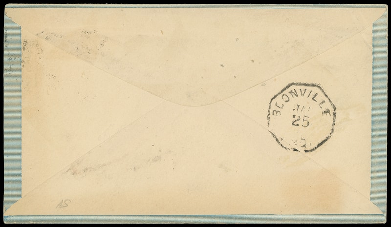 (Furnishings) "H. Rohmeirer Clothier, Shamokin, Pa", green-black squared advertising collar on cover bearing 2¢ carmine (220) tied on cover by "Shamokin, Pa. Aug 20" duplex to Middleburg, Pa., Aug. 24, 1891 arrival backstamp, Very Fine, ex-Biddle, Weiss .