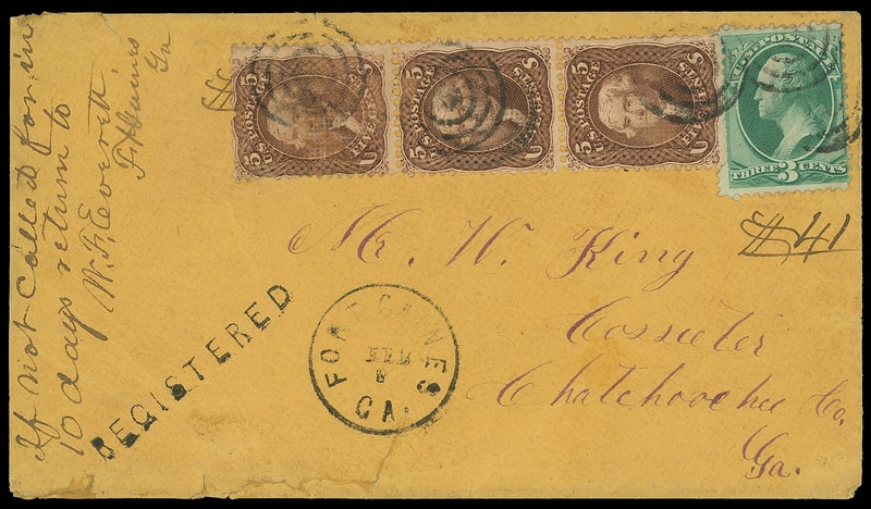 AN EXCEPTIONAL 1869 ISSUE REGISTERED USE FROM ATLANTA, GEORGIA.Lot 296