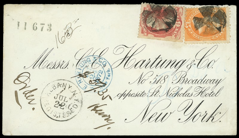 The New York flueron cds was used only on registered mail. The fancy cancellation was also used only on registered mail.